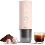 Outin przenośny ciśnieniowy 20 Bar ekspres - do kawy mielonej i na kapsułki - Nano Różowy kwarc