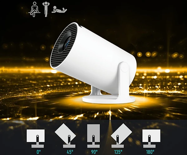 Projektor sam dopasowuje geometrię obrazu, nawet gdy stoi pod kątem - koniec z ręcznym ustawianiem i przekrzywionym ekranem. Obrót od 0° do 180° pozwala rzutować na ścianę, sufit lub dowolną powierzchnię - oglądasz filmy siedząc, leżąc w łóżku czy na kanapie. Ręczna regulacja ostrości dopasowuje obraz do odległości i rozmiaru projekcji w kilka sekund.