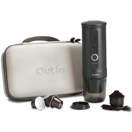- Zestaw Traveler Gift Set Space Grey to elegancki przenośny ekspres do kawy Outin Nano z etui. Parzy espresso z zimnej wody w 200 sekund. Idealny prezent dla kawoszy, którzy cenią doskonały smak kawy i porządek.